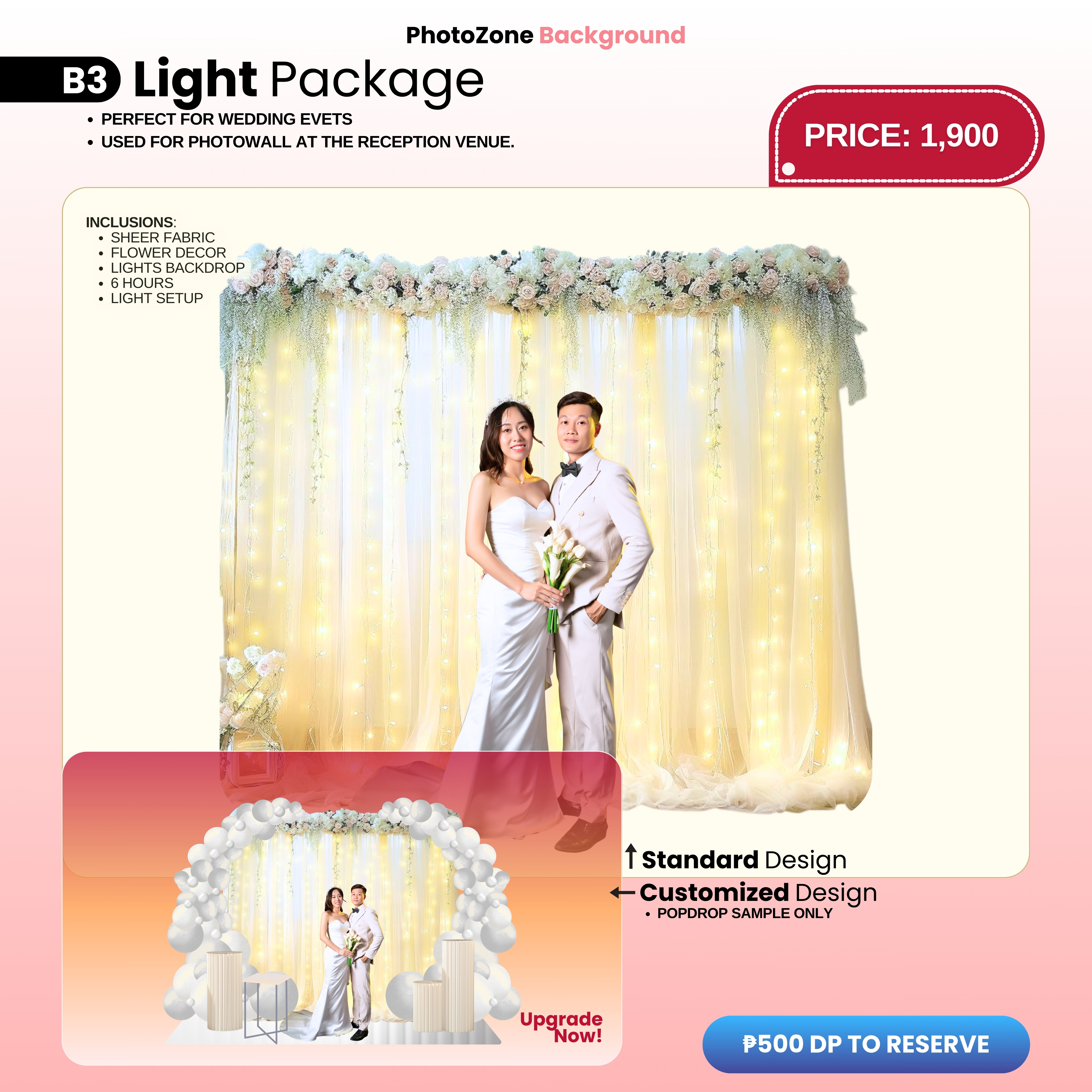 A beautiful zone or spot where guests can take pictures usually placed outside the venue.